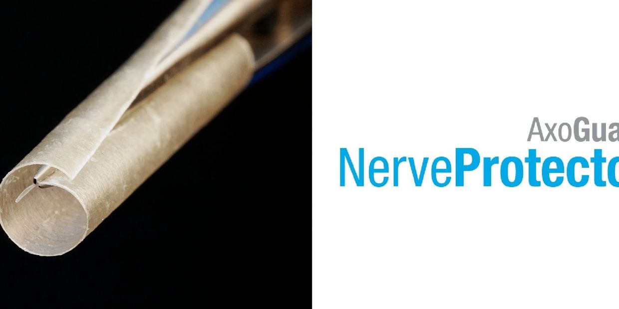 The AxoGuard is a layered porcine extracellular matrix that can be positioned around injured or scarred nerves. Revascularisation allows restoration of nerve glide.